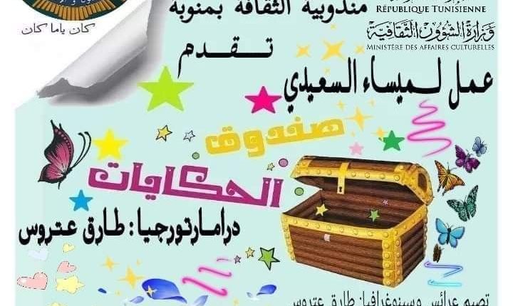 عرض عرائسي خصوصي للمودعين بالمؤسسات السجنية في انتاج مشترك بين السجن المدني للنساء بمنوبة و المندوبية الجهوية للشؤون الثقافية بمنوبة : عرض عرائسي بعنوان”صندوق الحكايات”وهو عرض عرائسي موجّه للأطفال واليافعين الذين تتراوح أعمارهم بين 4 و16 سنة ،إخراج الأستاذة ميساء السعيدي خريجة المعهد العالي للفن المسرحي بتونس، دراماتورجيا طارق عتروس مؤلف محترف من الجزائر الشقيقة،والذي قام بدوره بالتصميم العرائسي والسينوغرافي ، وقامت ميساء السعيدي بتنفيذ صنع العرائس والسينوغرافيا ميساء السعيدي التي أفادتنا ان هذا العرض هو تتويج لعمل ورشة إمتدت على طيلة 06 أشهر في مسرح خيال الظل ضمّت 12 ممثلة من 5 جنسيات مختلفة من ألمانيا والمغرب والجزائر وتونس و السنيغال ،هو عرض جاء نتيجة لورشة في مسرح خيال الظل ، كانت الفكرة هي إعادة ادماج المقيمات بالمؤسسة العقابية وتأهلهم لكسب حرفة بعد الخروج وانتهاء مدة العقوبة بغية إعادة ادماجهن في الحياة والمجتمع والتحدي في الفكرة التي طرحتها على هو كيف تتحول من صدر في حقها عقوبة سجنية الى انسان منتج يكسب لقمة عيشه بالمسرح ، وقد كانت للورشة أثر كبير على المشاركات حيث ساعدهم في اكتشاف الجانب الخيري المضيء في شخصياتهن وكانت للورشة اثر طيب في نفوسهن ونفوس بقية المقيمات زميلاتهن اللواتي كن يحضرن لمشاهدة التدريبات من حين الى أخر. يعد هذا العمل إعادة طرح جديد لمجموعة من القصص العالمية المعروفة وغير المعروفة تمت اعادة وتناولها عبر عرض مسرحي يقدم شخصيات حقيقية تتلاشى بين ما هو حقيقي و ما هو خيالي وبين ما هو مألوف وغير مألوف في لوحات مترابطة في ما بينها من حكاية إلى حكاية ومن عصر إلى آخر ومن بلاد لآخر عن طريق شخوص آدمية او عن طريق ألسنة الحيوان وتتخلل هذه اللوحات بروز لبعض الشخوص التي تحاول صنع الحدث وتحويل العمل إلى مزيج متناغم لما هو واقع في شاشة العرض الخاصة بمسرح خيال الظل وما هو واقع على خشبة المسرح وذلك بهدف صنع متنفس يحمل المتفرج الصغير لعالم بريء مليء بالخيال وقد حاولت مخرجة العمل في كل مرة خرق أفق توقع المتفرّج والمشاهد لما سيشاهده بالانسجام الحاصل بين الممثل في تحريك العرائس داخل الحكايات بتقنية خيال الظل وبين ما هو تعبير جسماني وإيماءات وتمثيل وتجسيد لشخصيات على خشبة المسرح وعبر المرور بسلاسة من حكاية إلى حكاية مع المحافظة على نسق وإيقاع معيّن يبعث الارتياح لجعل المشاهد يتابع العرض إلى نهايته وبالتركيز على خصوصيات بناية الفعل الدرامي باختلافه والوانه والتي تجعل من العرض مادة تفاعلية ممتعة.